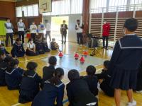 思った通りに動かないと、グループで相談して修正を繰り返し、うまくいくと拍手や歓声が上がっていました。最後は、村田製作所の方が作られた玉乗りロボットが動く様子を見て、プログラミングの素晴らしさに感動した子ども達です。「いつもはパソコンで人形を動かしたりしたけど、実際に動くのを見ることができて楽しかった。」等の感想が聞けました。