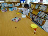 この工作が載っている本の紹介や芽が出たどんぐりを見せて下さる等、子ども達の世界を広げる関わりもしてくださっています。図書ボランティアのみなさん、いつもありがとうございます。