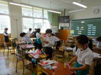 1年生が図工の学習で、「ぱくぱくさん」を作りました。どんなぱくぱくさんを作りたいのか、自分で考えて決め、イメージして色や飾りを考えました。子ども達の発想力や構想力の豊かさと、自分の表したいものを表現できた満足げな顔がすてきでした。作った後は、ぱくぱくさんと遊んで楽しみました。