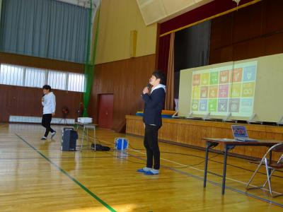 12月9日、ぶんぶんボウルさんが来校し、5年生がSDGsについて楽しく学びました。「焼却炉が世界に100個あるとしたら、日本にはいくつあるか?」「1日200円以下で生活する人は、30年前に比べて減っている、〇か×か」などのクイズや楽しいトークで、あっという間の45分でした。