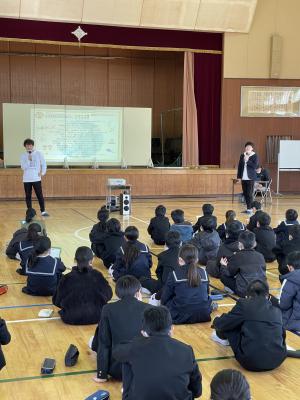 東出先生から、冬休みの生活について、赤、白、黄色、赤白、黒白と色ごとに注意すること、大切なことのお話、中嶋先生から、オミクロン株、感染対策についてのお話がありました。
