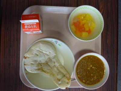 3月11日の給食献立は、チーズキーマカレーでした。6年生が外国語科の学習で考えた中から、全校児童に行った「外国カレーコンテスト」アンケートで1番になったメニューです。