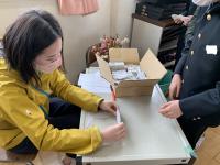 「なつかしーい」「本当や、これ書いたわ」など、1年間を思い出し、振り返りつつ、自分たちが一生懸命仕上げた作品や掲示物などを配っていました。