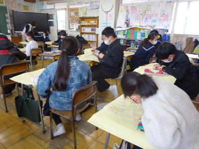 6年生が先生方へ、感謝のメッセージと家庭科で作製したコースターを届けてくれました。心を込めて書かれたメッセージと丁寧な刺し子のコースター、本当にありがとう。6年間の成長と子ども達の温かい思いがとても嬉しいです。