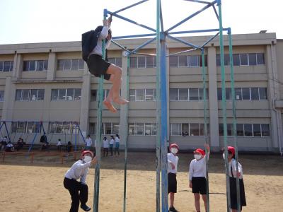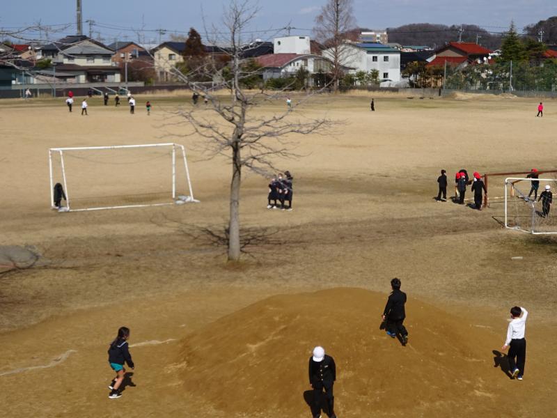 昼休みの校庭では、体を動かしたり、自然に触れたりして思い思いに遊んでいます。