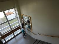 丁寧に、体育館入り口に置いて教室へ向かいました。