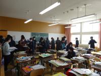 各教室では、たまった作品や掲示物を分けたり、1年間共に過ごした仲間と「お別れ会」や「お楽しみ会」を開いたりして、1年の締めくくりをしていました。