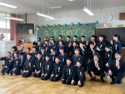 退場の後、教室へ戻り、担任の先生、クラスの仲間との別れの時を過ごし、全校児童が拍手で見送る中、すがすがしく寺井小学校を旅立っていきました。
