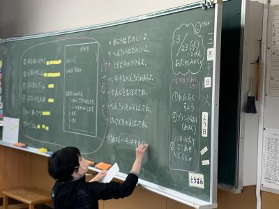 次は、3学期にできるようになったことを各学年の3組と5年2組が、発表しました。成長した自分たちに自信を持って発表する姿が素晴らしかったです。