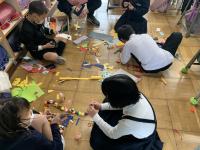 お楽しみ会やお別れ会は、「〇〇バスケット」「ハンカチ落とし」「クイズ大会」「ジェスチャーゲーム」「人探し」など、それぞれの担当が考えた内容です。司会や飾りつけ、プログラム作りなども分担し、生き生きと準備していました。
