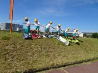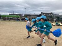 団体競技「チームで繋げ!4種リレー」の練習の後、自分たちで声を掛け合い、楽しそうに道具を運んでいました。体育館の入り口では、「ちょっとストップ!!」「みんな靴脱いで」「ゆっくりねー」「気を付けて」など声を掛け合い運ぶ姿は、チームワーク上昇中!