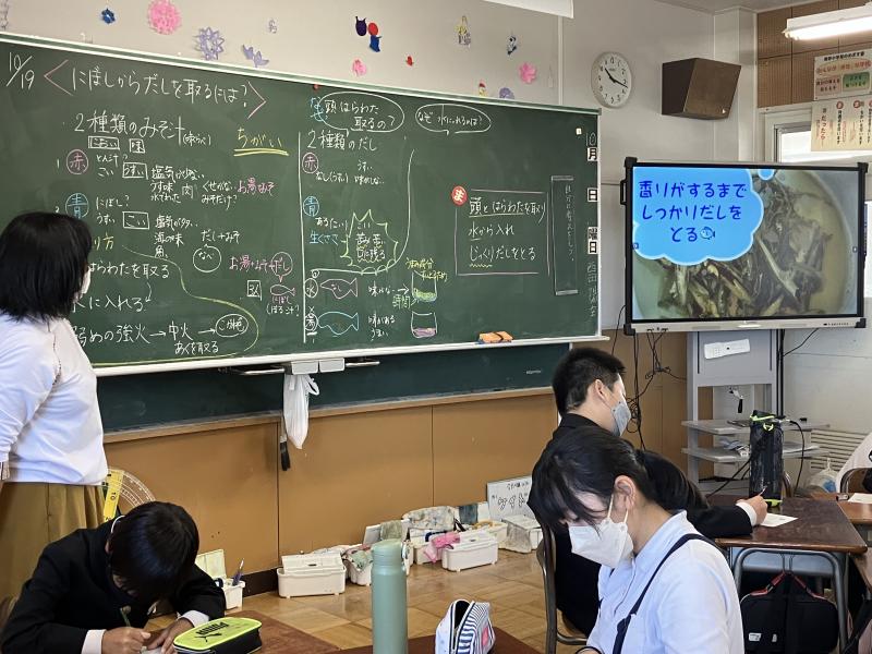 5年生の家庭科で「食べて元気!ご飯とみそ汁」の勉強をしています。