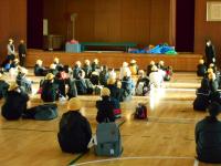 体育館で出発式。実行委員が司会を務め、修学旅行のめあてを確認しました。