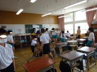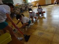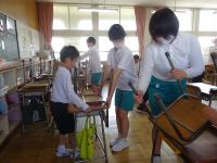 1年生が掃除を始めていますs。上級生に教えてもらったり、助けてもらったりしながら、一生懸命掃除をしていて素敵です。