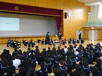 任命呼名時の児童会役員、委員会役員、学級役員の返事には、「いい学校をつくっていきたい!」「みんなのためにがんばるぞ!」などの決意が感じられ、とても素敵でした。また、ほかの児童は、応援の気持ちと一緒に頑張ろうと育気持ちを込めた温かい拍手が送られました。