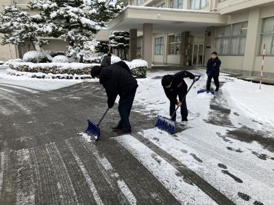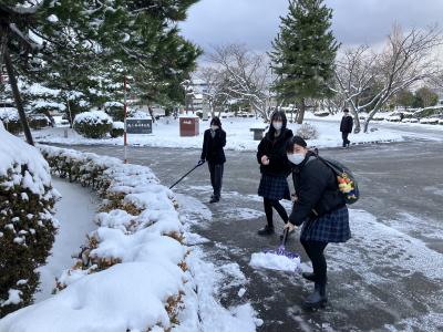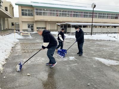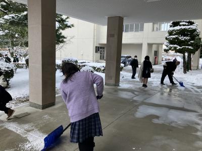 たくさんの生徒が除雪に協力してくれました。
