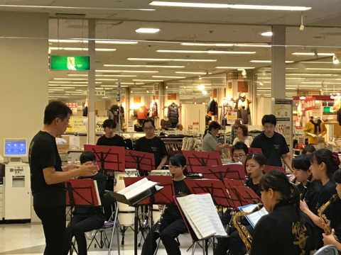 夏休みの最後を飾る校外での演奏会は『辰口まつり』でした。OBOGや社会人バンドの方々と楽しく演奏させていただきました。それにしても暑かった〜!