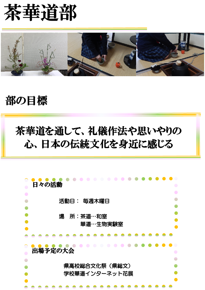 5月31日の総文茶会で、本校茶華道部は小松工業高校とお茶席を担当します。