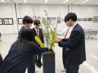 生徒が、それぞれの花材を用いた個人作品と1,2年生全員で取り組んだ共同作品を展示しました。