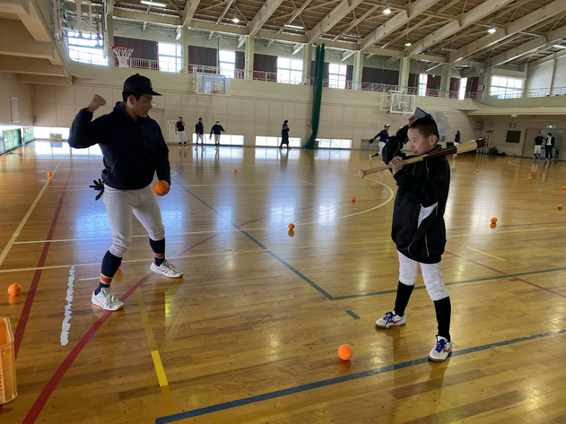 本日は地元の能美郡市中学校野球部の子たちに参加してもらい、野球教室