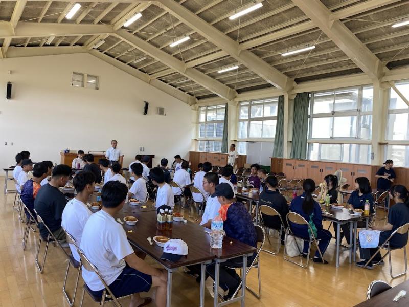 試合後には、寺井高校野球部保護者会の皆様が用意してくださった「勝つカレー」を2校みんなでいただき、親睦を深めながら、公式戦に向けて健闘と再会を誓いました。