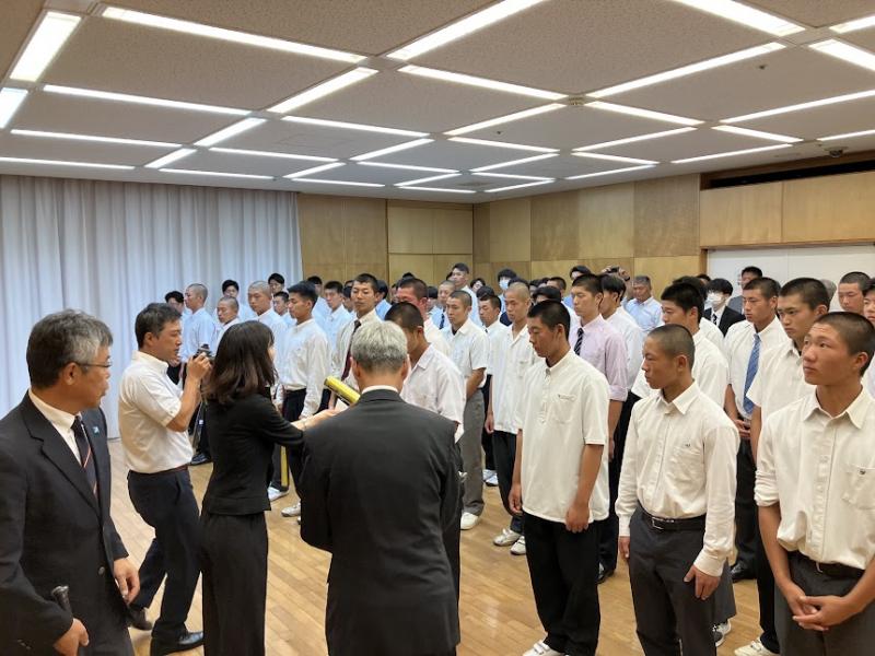 また抽選会に先立ち、震災に際して元プロ野球選手である長嶋茂雄さんから県内全加盟校に金属バットを寄贈していただき、長女である三奈さんからの贈呈式がありました。