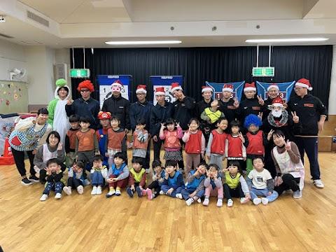 近隣の豊美保育園に出向いて、園児たちに野球を体験してもらいました。