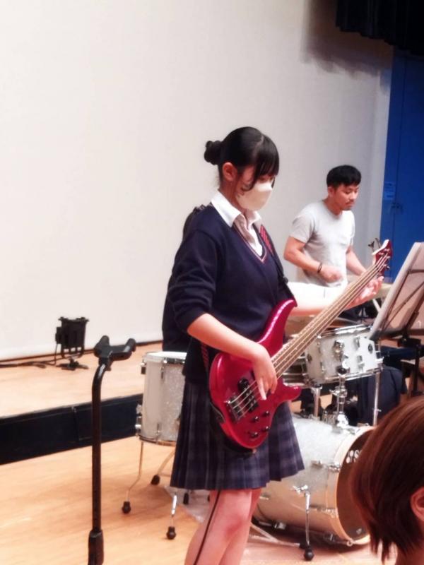 全校生徒の前で演奏しました。