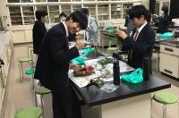 1、2年生が池坊の先生のご指導のもと、協力して共同作品の生け込みをしました。