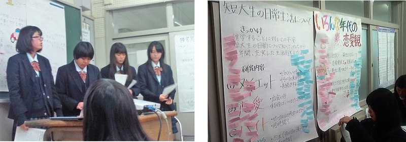 全22班が、自分たちで設定した探究テーマと探究活動の中心になる校外フィールドワークや探究計画について、ポスターやICT機器を使って発表しました。