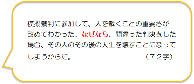 ①80字以内で書く、②2文で書く、③2文を接続詞でつなぐ、