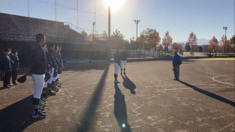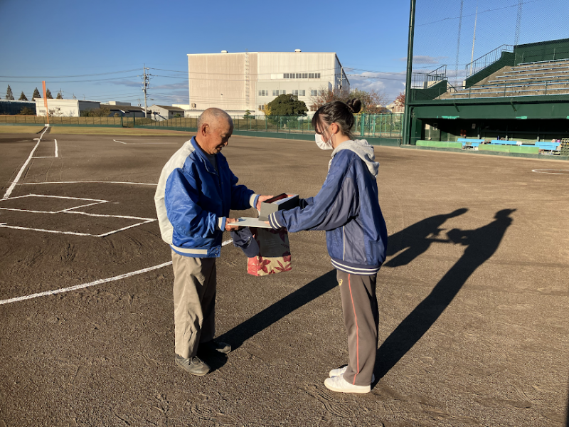 年内に使用する最後の日となった今回、いつも運動公園を管理してくださっている職員の安野幸雄(やすの ゆきお)さんへ、部員みんなでささやかながら感謝の思いを届けました。