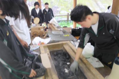 最初は「火起こし」 事前に学習した成果が出ていたグループとそれでも苦戦したグループがあり、