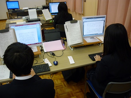 実際にパソコンに触れて、中学生の皆さんも頑張って入力してました。