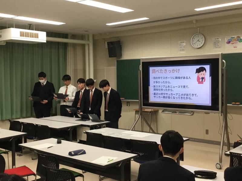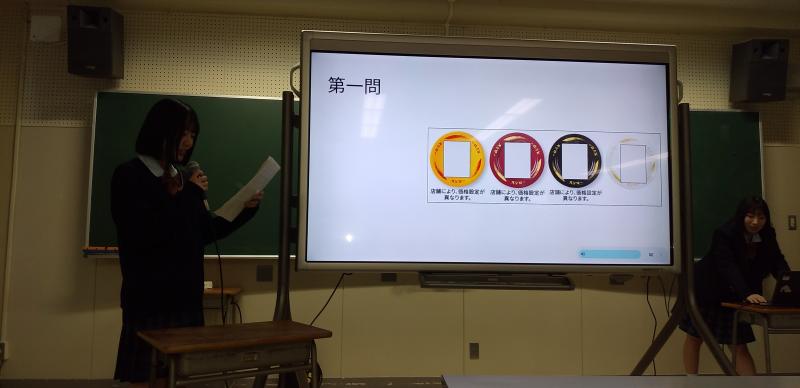 全校生徒の投票の結果、最優秀班に選ばれたのは就職9班の発表(「100円寿司が人気な理由」)でした。おめでとうございます!