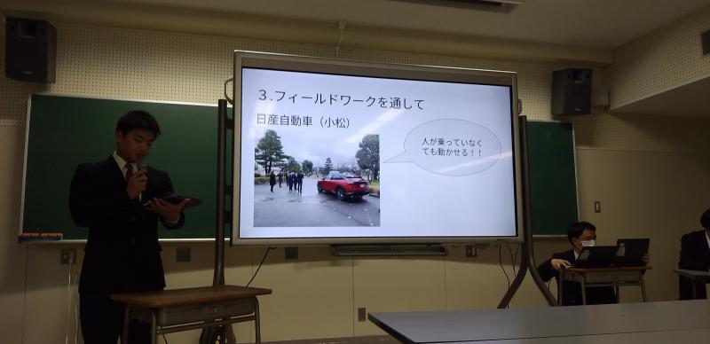先週のコンテストで選ばれた代表の4つの班が、順番に発表しました。