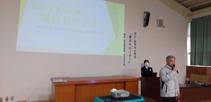 3年生 「巣立ちセミナー」(非行・被害防止)と「車社会に出る高校生の君たちへ」(交通安全)の講座開催