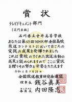 テレビ作品「MOTTAINAIで繋がる絆」は、フードバンク石川や芝寿しさんと本校野球部との「フードロス」を無くす活動でのつながりを描いた作品で、審査員からの評価も高く、優良賞をいただくことができました。北信越大会への出場推薦もいただきました。