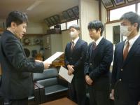 1月26日、図書室からたくさんの本を借りてくれた3年生3人にベストリーダー賞・グッドリーダー賞として、校長先生から賞状と貸出記録、記念品を渡していただきました。3人とも100冊以上の貸出がありました。校長先生からは今後もどん欲に読んでいってください、と声をかけていただきました。