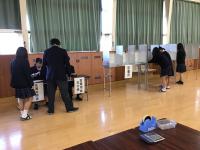 その後、生徒が係として運営する模擬投票が行われ、実際の選挙投票と同じように体験させていただきました。