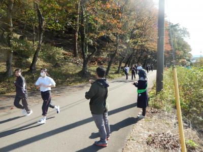 11月5日(木)マラソン大会に合わせ、地震による津波・河川の氾濫を想定し、学校から1.2Kmにある和田山公園まで避難訓練を行いました。