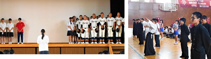 今年はコロナウイルスのために総体・総文、甲子園など、3年生の最後の大会がなくなってしまいました。これから代替大会のある3年生もいますが、これまでの部活動に一区切りつけて、これからの進路決定に向けて頑張ってもらうために、このような式を企画しました。