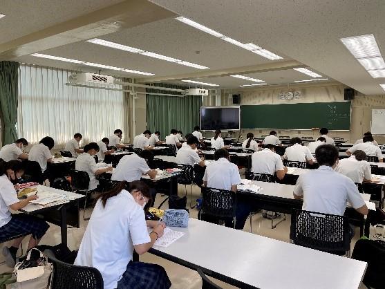 初日には21Hの生徒と共に、(株)キッズコーポレーション主催で、公立小松大学と金沢学院大学から講師の先生をお招きし、模擬授業に参加しました。普段体験することのできない大学の講義に、生徒たちは集中して学習していました。