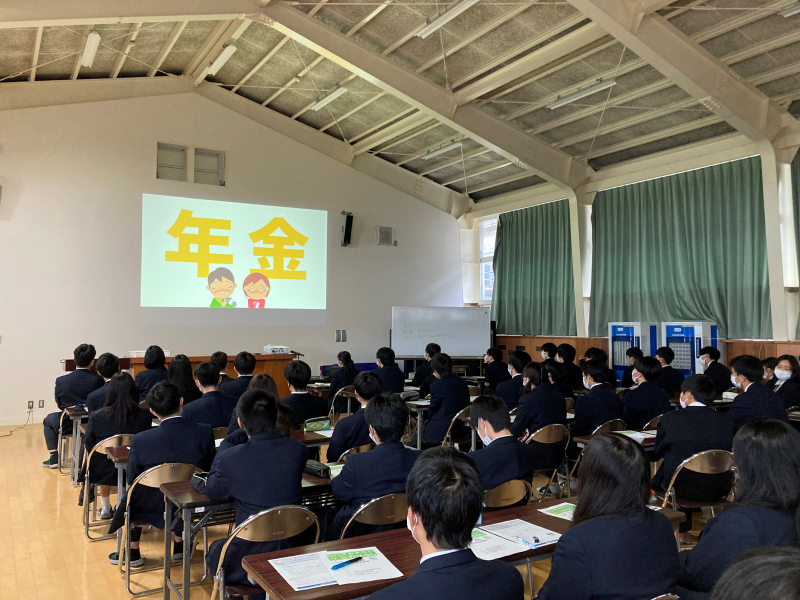 3年生対象に日本年金機構による「知っておきたい年金のはなし 20歳になったら国民年金」のDVDを視聴しました。就職であれ進学であれ、20歳になれば支払いか手続きをするのが良いことを学びました。
