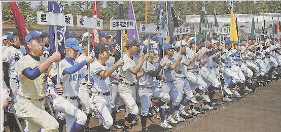 野球部の3年生のマネージャー道堂まりなさんが第99回全国高等学校野球選手権石川大会の開会式で司会を務めました。選手達も堂々の入場行進でした。