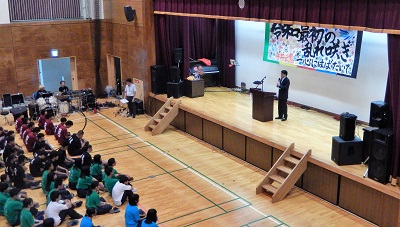 8月30日(金) 新しいALT エリザベス・ニコルソン・グラハム先生(ニキ先生)の新任式と、2学期始業式が行われました。