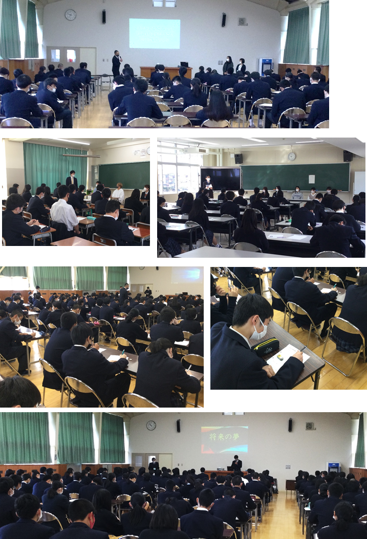 新学年への進級を目前に控えたこの時期、卒業生を講師とした講話や、卒業後の進路についての発表などを行い、次の学年に向けて準備しています。