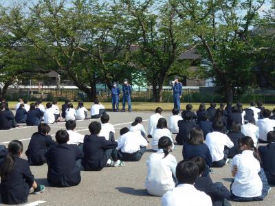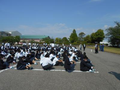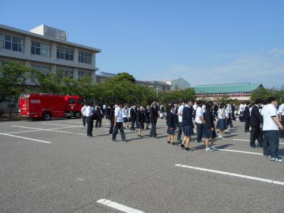 避難訓練が行われました。調理実習室から出火の場合を想定し、全員前庭駐車場に避難しました。緊急連絡や避難経路の確認、安全に避難するための確認など、緊張感を持って訓練に臨むことができました。