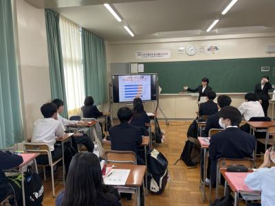 10月25日(水)と27日(金)の2回に分けて、1年家庭基礎の時間に金沢大学3年生による食育授業を受けました。朝食の大切さやバランスの良い食生活についてなど、自身の食生活を振り返る良い機会になったと思います。年の近いお姉さん先生からのお話だったので、いつもより真剣に授業に取り組んでいたと思います。