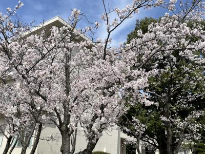 先週末から咲き始めた校庭の桜が、今日は満開になりました。
